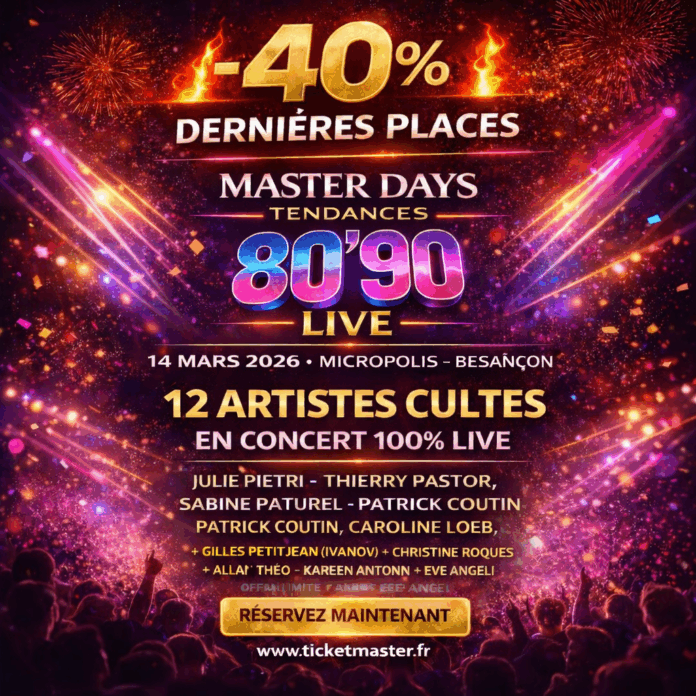 Vibrez, chantez, dansez… et profitez dès maintenant de l’offre exclusive Master Days sur Ticketmaster pour réserver vos places. Un événement générationnel à ne pas manquer !