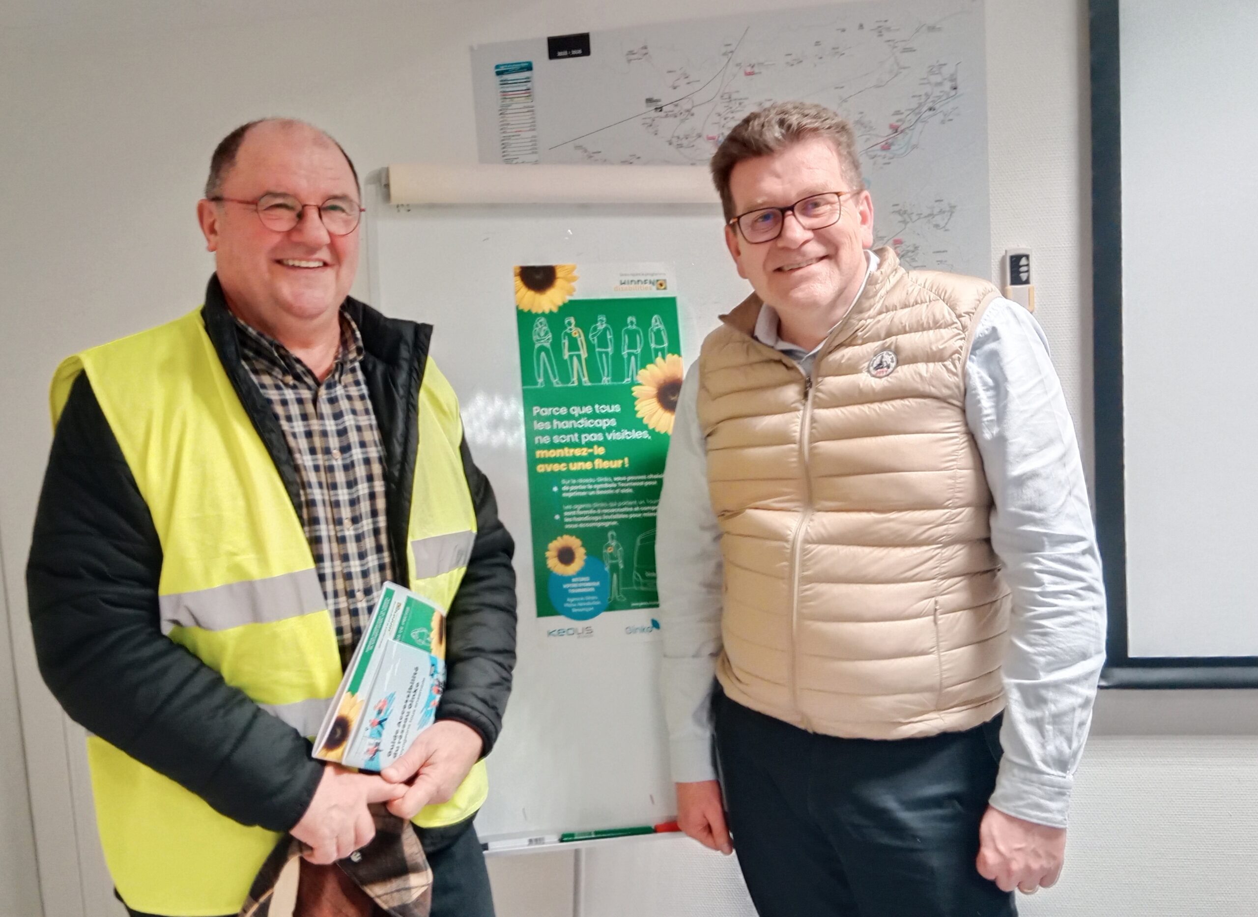 Christian Magnin-Feysot Maire de Chalezeule et vice-président de Grand Besançon Métropole et Laurent Sénécat Directeur de Keolis Besançon Mobilités à l'initiative d'un programme qui rend visible les handicaps invisibles dans les transports en commun de Besançon ©YQ