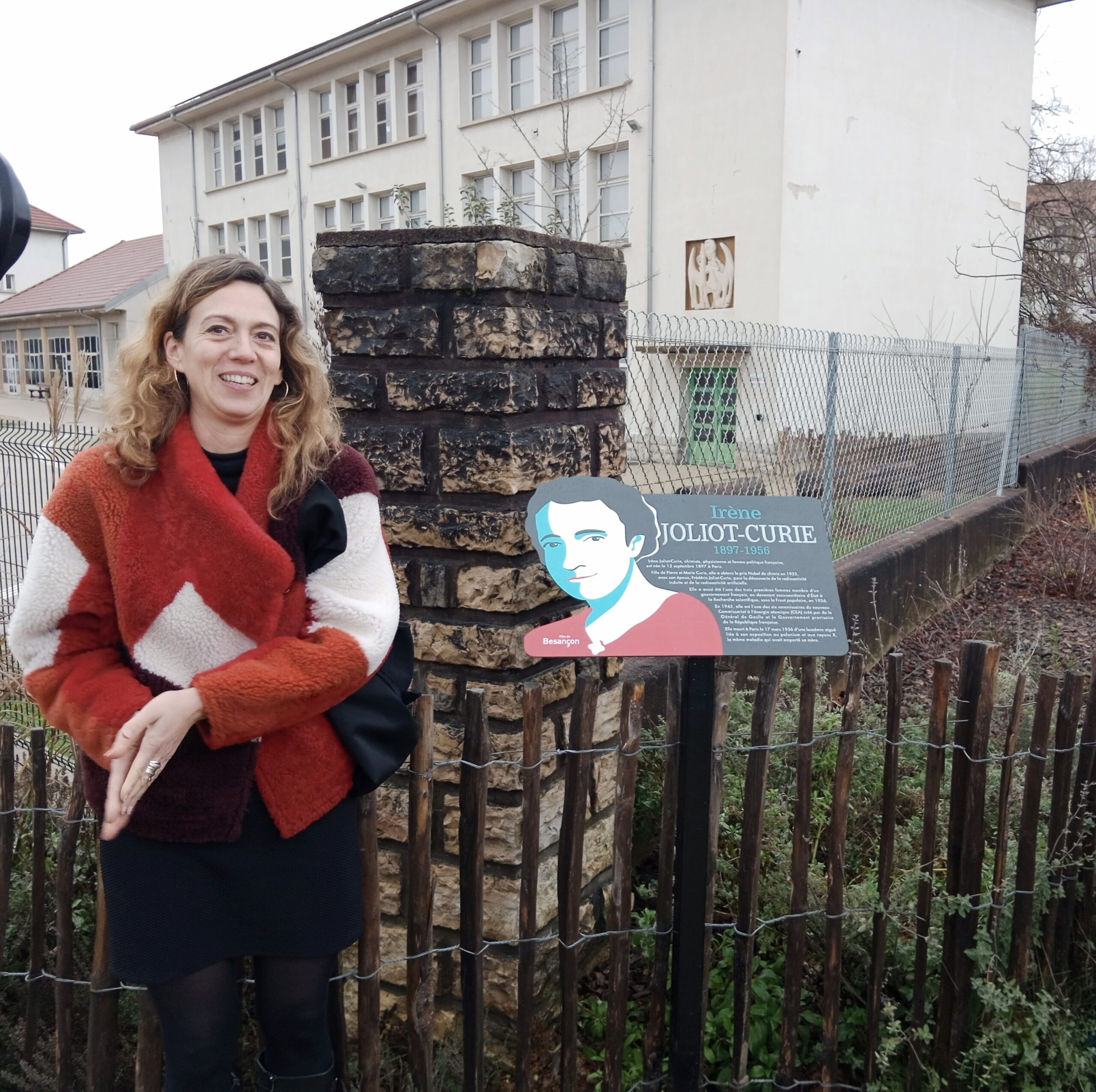Cette scientifique donne son nom à la petite place devant l’entrée de l’école élémentaire qui porte le nom de ses illustres parents Pierre et Marie Curie, rue des Roses dans le quartier de Palente. Irène Joliot-Curie n’était pas seulement « la fille de… ». Chimiste, physicienne et femme politique, elle a reçu le prix Nobel de chimie en 1935 pour récompenser ses travaux sur la radioactivité induite et la radioactivité artificielle. Elle mourra en 1956 des suites d’une leucémie aigüe liée à son exposition au polonium et aux rayons X.