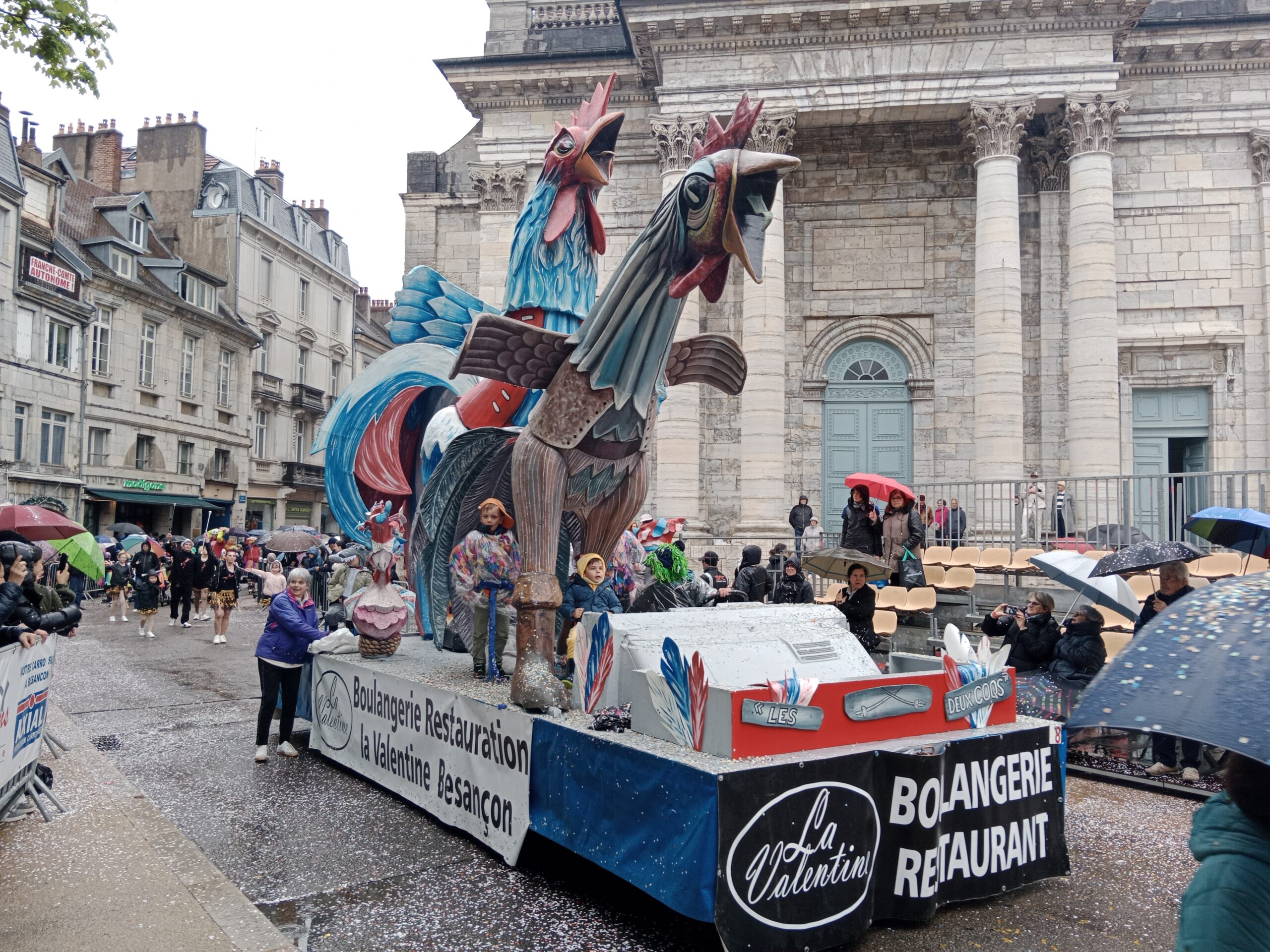 C’est presque une tradition à Besançon. On compte plus facilement les années pluvieuses qu’ensoleillées pour fêter le retour du printemps. L’édition 2026 n’a pas failli à la règle. Pas de quoi décourager les spectateurs venus en nombre. Ils étaient près de 10 000 ce dimanche 12 avril dans les rues de la Boucle pour assister au grand défilé des chars et fanfares du Carnaval.