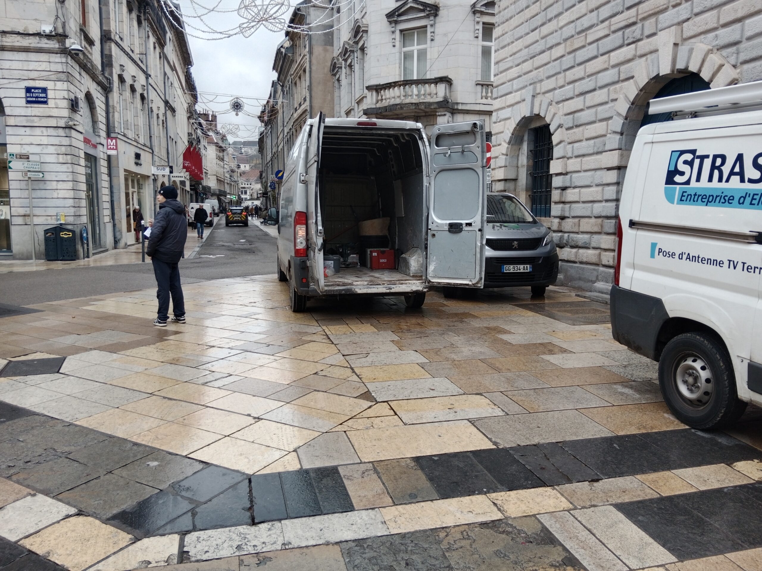 Même devant l’Hôtel de Ville, les artisans sont obligés de stationner à proximité de leur chantier ©YQ