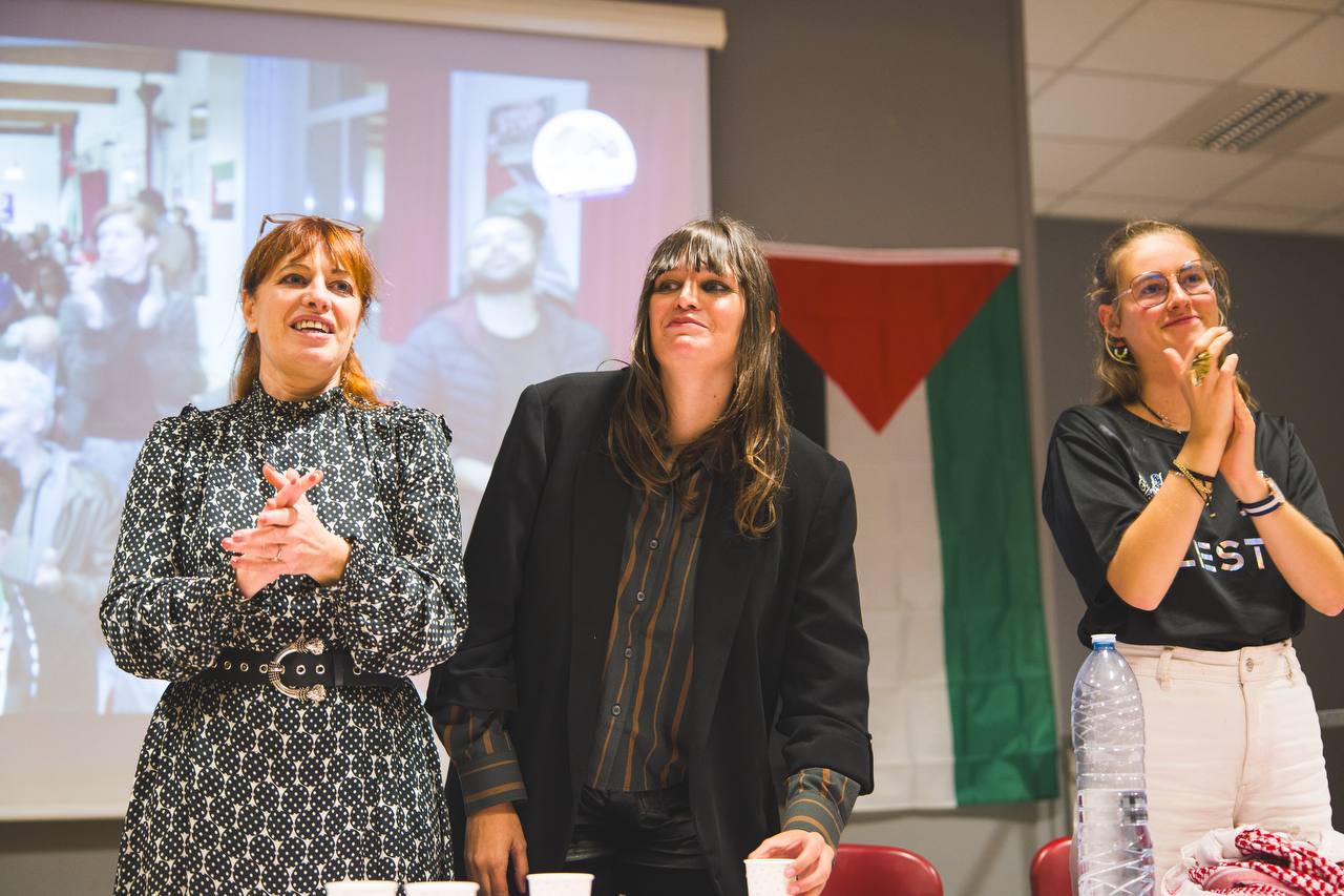 Le duo se déplace un peu partout en France depuis son retour d’Israël où, comme d’autres représentants français et internationaux, elles ont été arrêtées après avoir participé à la Global Sumud Flottilla, ce vaste convoi maritime cherchant à briser le blocus israélien de la bande de Gaza. Une des nombreuses initiatives populaires pour tenter d’apporter un soutien « aux victimes du génocide israélien ».