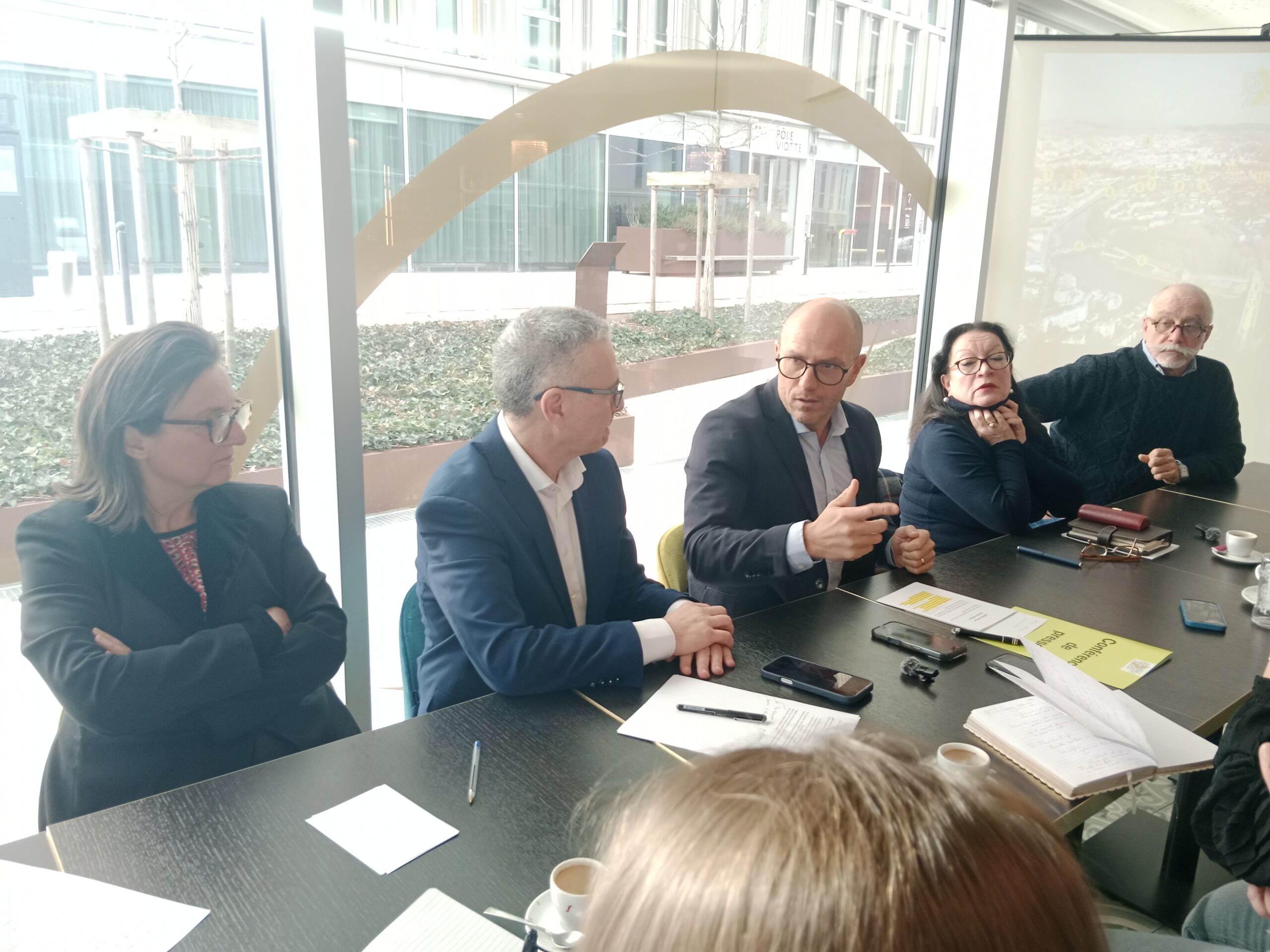 Réunis au café du temps de la gare Viotte, une partie des co-listiers de Ludovic Fagaut ont présenté les 18 points de leur projet "Besançon Confluence" ©YQ