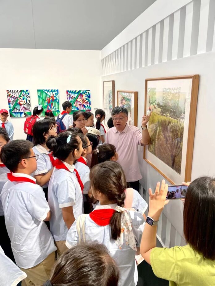 Photo prise au Musée des Beaux Arts de Hefei (Chine) en mai 2024, apparaissent à l'arrière-plan, les œuvres d'une artiste pontissalienne de l’association Géraldine Longchampt / © AFC-AFC