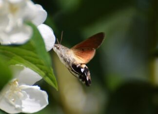 Facilement reconnaissable par ses vols stationnaires et sa trompe pour butiner, le moro-sphinx est un papillon observable en Franche-Comté, puisqu’il est le plus répandu des sphinx dans la région.