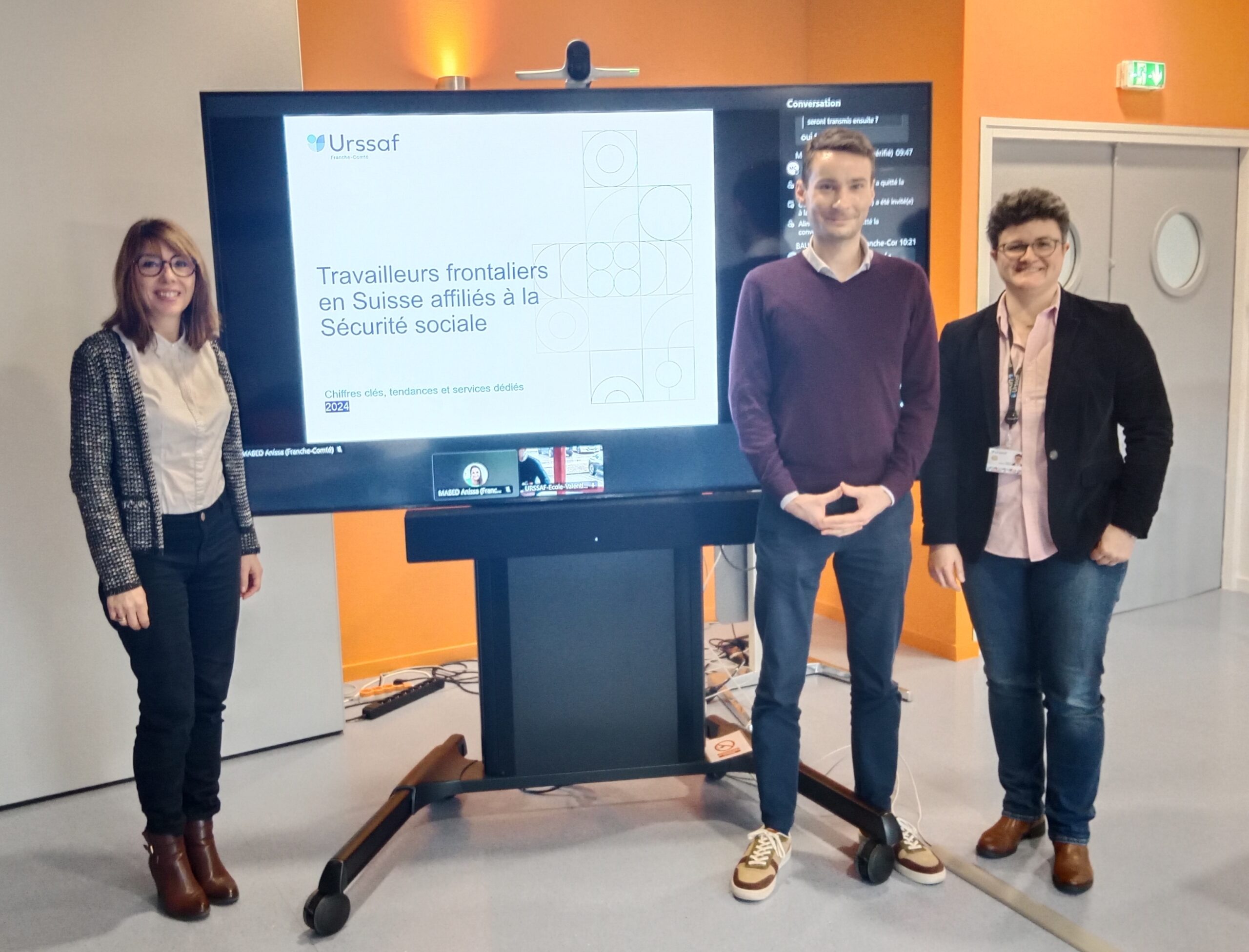 Valérie Baudeigne, statisticienne, Romain Gibert, Directeur comptable et financier de l'Urssaf Franche-Comté, Amandine Durupty-Perriand en charge des travailleurs frontaliers de l'Urssaf Franche-Comté ©YQ