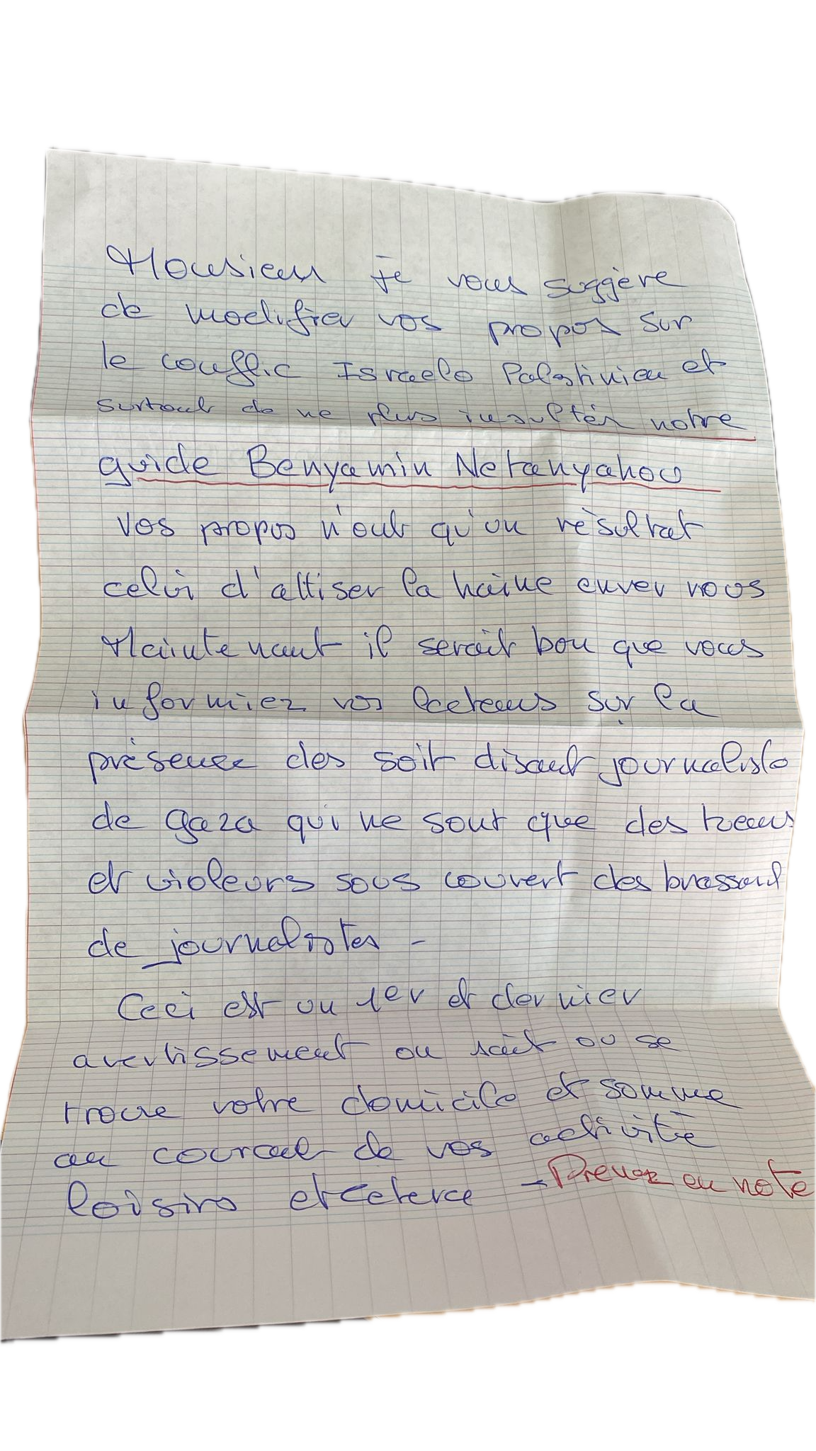 Guerre israélo-palestinienne : notre journaliste menacé par une lettre anonyme