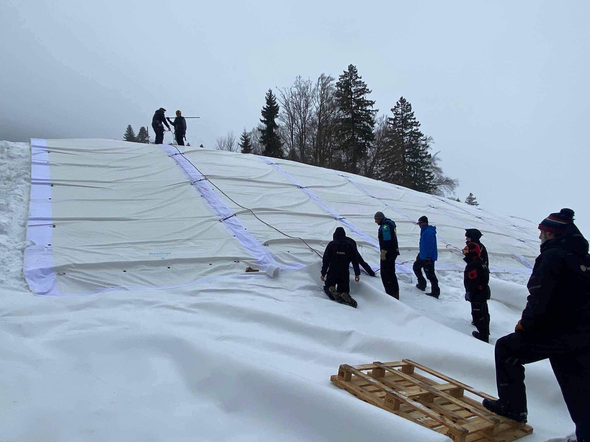Ils ont fait appel à l’entreprise Snow Secure, directement venue de Finlande. « On met du polystyrène XPS, utilisé sous les bâtiments en Finlande pour isoler », explique Antty Laslahti, directeur général de l’entreprise. Des matériaux qui devraient permettre à la neige de passer la saison estivale.