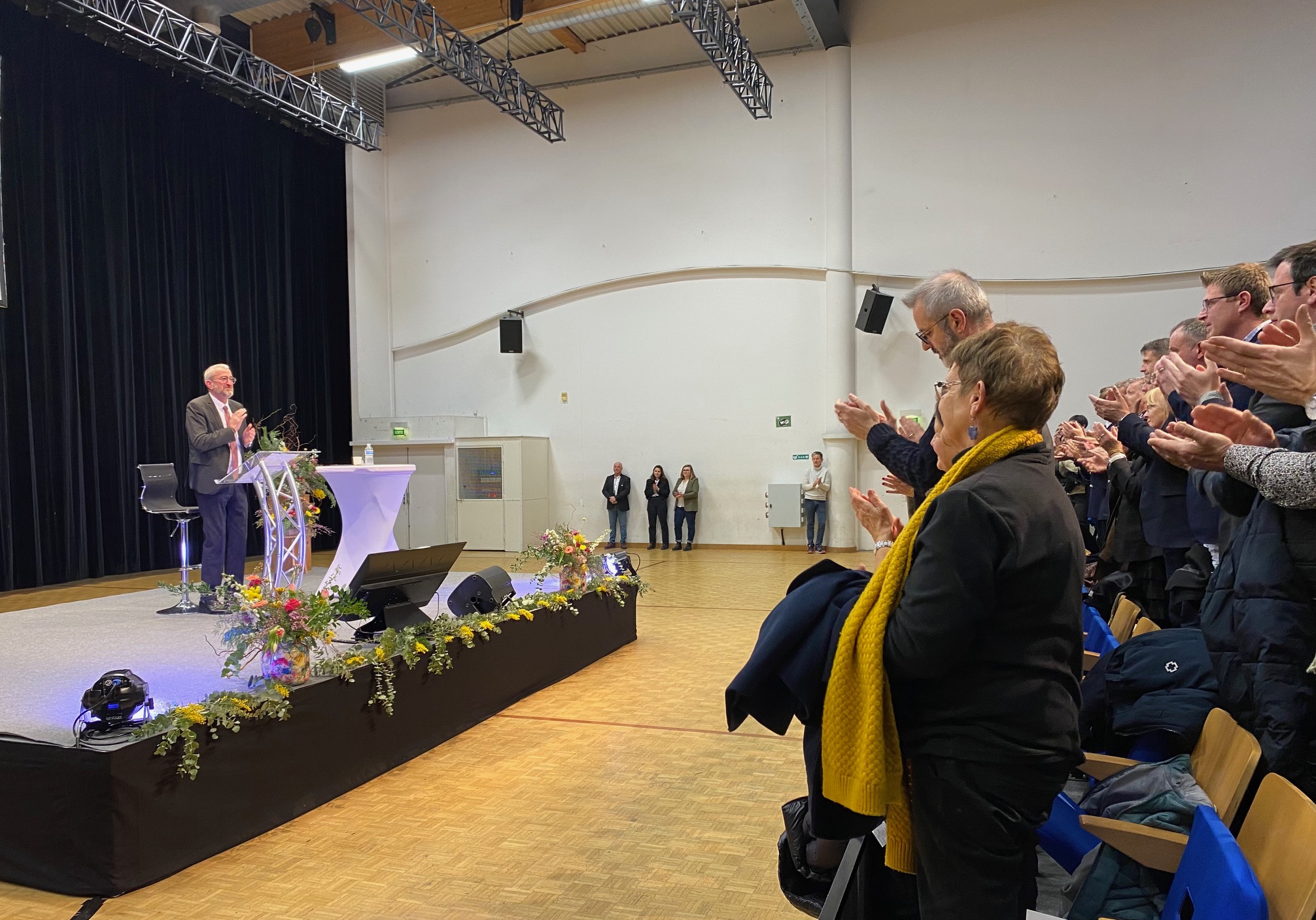 Au moment de passer aux remerciements des agents, des élus, des partenaires, et de tous les acteurs du territoire, la gorge commence à se nouer. Mais c’est en passant aux mots pour sa famille, présente dans la salle, que Patrick Genre finit par être ému aux larmes. Les applaudissements l’encouragent et il réussit à terminer son discours sur une citation de Saint-Exupéry. « “La grandeur d’un métier est avant tout d’unir des Hommes : il n’est qu’un luxe véritable, c’est celui des relations humaines”. Merci et bonne année ! ». Toute la salle s’est levée pour l’acclamer et rendre hommage à trois décennies d’engagement.