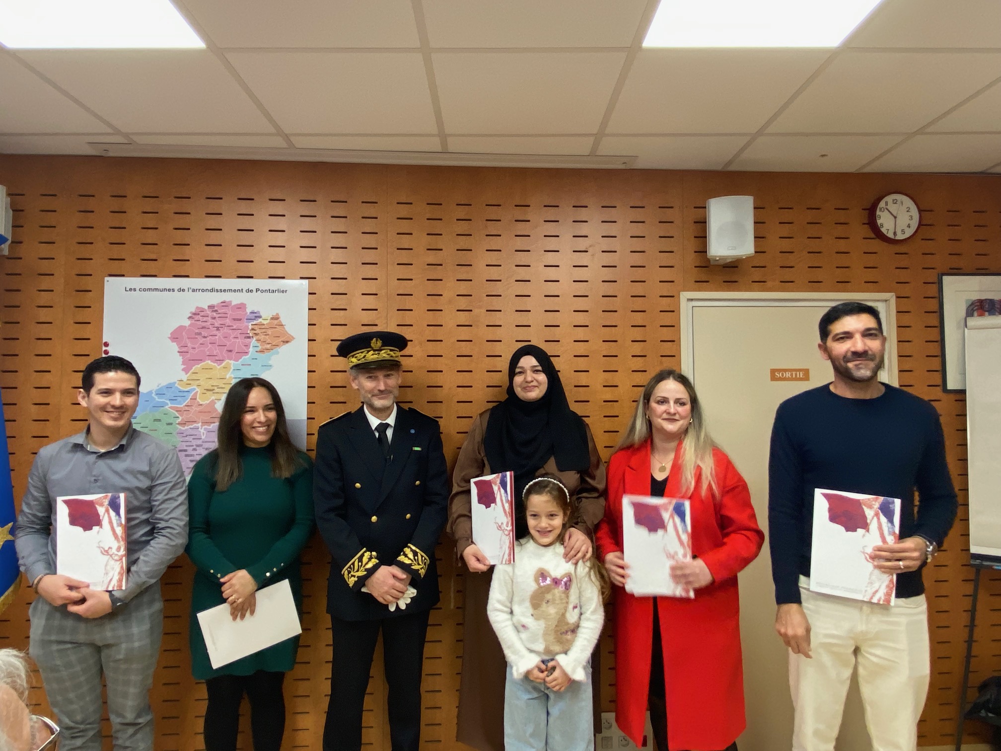 Ils sont issus d’Allemagne, du Brésil, de l’Équateur, du Kosovo et du Maroc, et ce vendredi 12 décembre est un jour important. Ces cinq personnes ont officiellement acquis la nationalité française lors d’une cérémonie officielle à la sous-préfecture de Pontarlier, en présence d’élus des communes de résidence des personnes naturalisées (Gilley, Orchamps-Vennes, Morteau, Pontarlier, les Premiers Sapins) et du vice-président de la Société de Médaillés de la Légion d’Honneur du Doubs. « Bienvenue chez vous ».