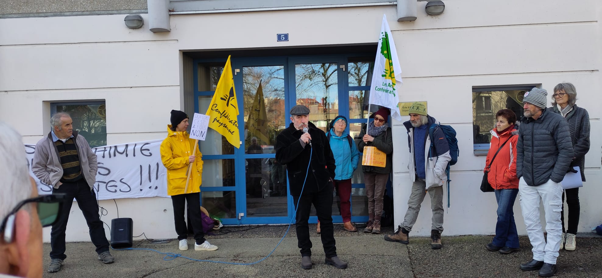 Des insecticides interdits vont-ils être de nouveau autorisés ? C’est la crainte de nombreux syndicats, ONG et agriculteurs. La » loi Duplomb « , vise notamment à favoriser la construction de mégabassines, d’autoriser la mise sur le marché des pesticides, et de réintroduire l’acétamipride interdit en France depuis 2018. Le Conseil constitutionnel avait censuré cette dernière disposition l’été 2025, mais le sénateur Laurent Duplomb est revenu à la charge en déposant un nouveau projet de loi le 2 février dernier visant une nouvelle fois à réintroduire, dans certaines cultures, l’acétamipride, ainsi qu’un autre pesticide, le flupyradifurone. “C’est un peu invraisemblable”, réagit Jean-Louis Cannelle de la Confédération Paysanne du Doubs. Une mobilisation s’est tenue au niveau national les 7 et 8 février. À Pontarlier, ils étaient une cinquantaine à manifester le samedi 7 février devant la permanence d’Éric Liégeon, député de la 5e circonscription du Doubs, remplaçant d’Annie Genevard, ministre de l’Agriculture et de la Souveraineté alimentaire.