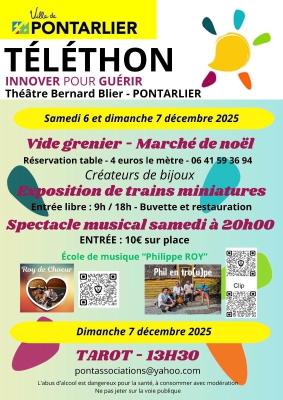 Les 6 et 7 décembre, la salle Toussaint Louverture du théâtre Bernard Blier accueillera de nombreuses animations pour récolter des fonds reversés intégralement au Téléthon. « C’est une cause qui me tient à cœur car le Téléthon agit sur la recherche et sur d’autres domaines. C’est important », explique Catherine Mollé, présidente de Pont’associations qui organise l’événement. Avec quelques bénévoles, ils mettent en place sur les deux jours un vide grenier qui affiche déjà complet au niveau des emplacements, un marché de Noël proposant des confections artisanales d’exposants locaux et une nouveauté cette année : une exposition de trains miniatures par le club ferroviaire de Franche-Comté. « C’est une reconstitution de décors et de trains animés sur 8 à 10 m de longueur », sourit la présidente. Une restauration est proposée sur les deux jours.