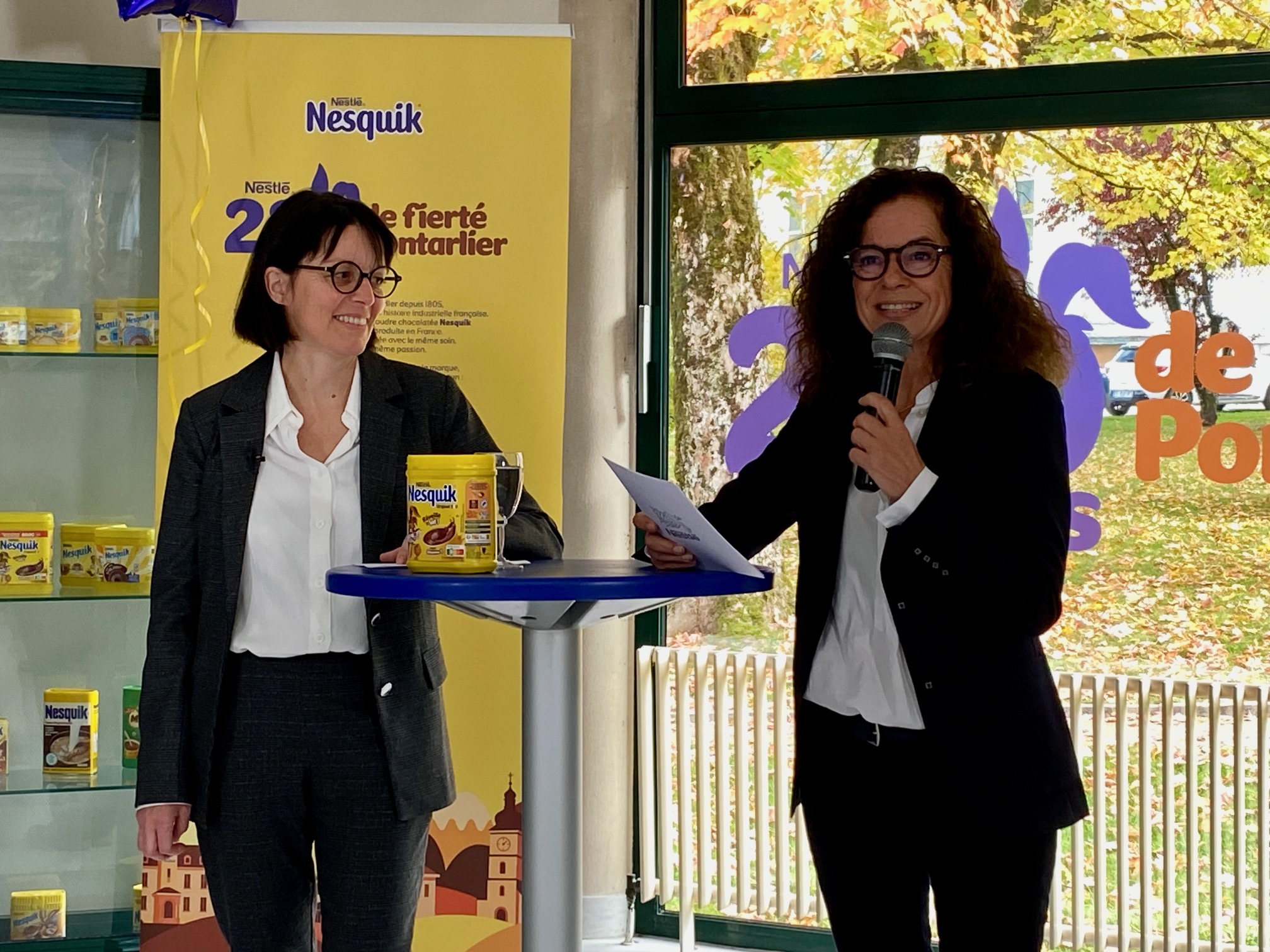 Céline Coste, directrice de l’usine de Pontarlier et Sophie Dubois, présidente de Nestlé France ©Cassandra Tempesta