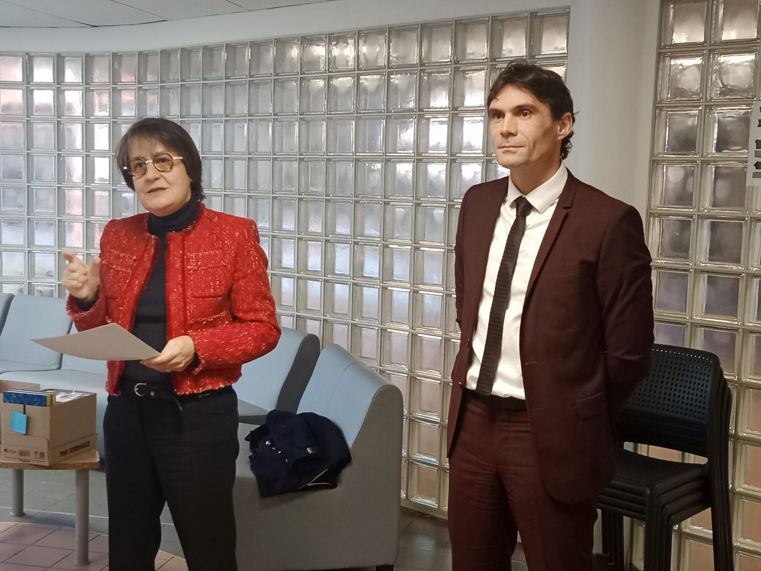 Nathalie Albert-Moretti Rectrice de l'académie de Besançon et Samuel Rouzet Directeur académique des services de l'Éducation nationale ont remis les 3 prix du "défi académique de lecture à voix haute" dans les locaux du lycée Pergaud à Besançon ©YQ