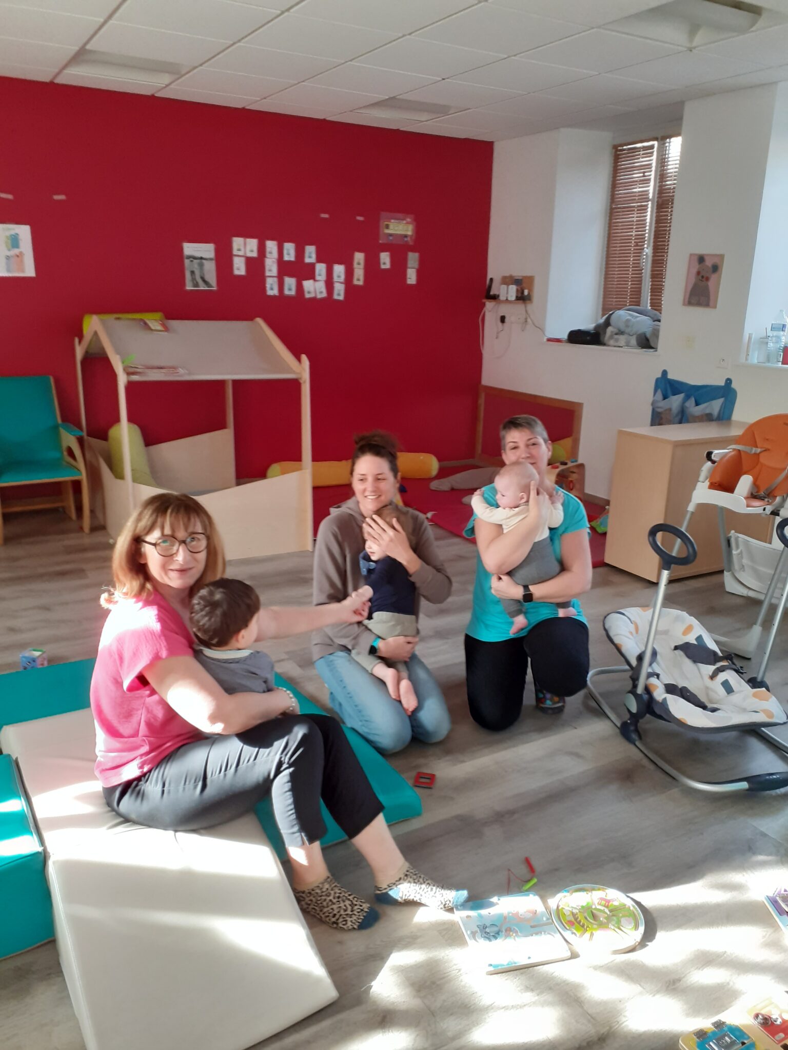 Une large place est laissée au jeu libre, seul ou en groupe, afin de permettre à l’enfant de devenir acteur de ses activités. Les professionnelles interviennent lorsque cela est nécessaire ou à la demande de l’enfant, mais privilégient également des temps d’observation afin de mieux comprendre les besoins, habitudes et émotions de chacun. Positionnées régulièrement au sol, à hauteur d’enfant, elles constituent un repère rassurant dans l’espace de jeu.